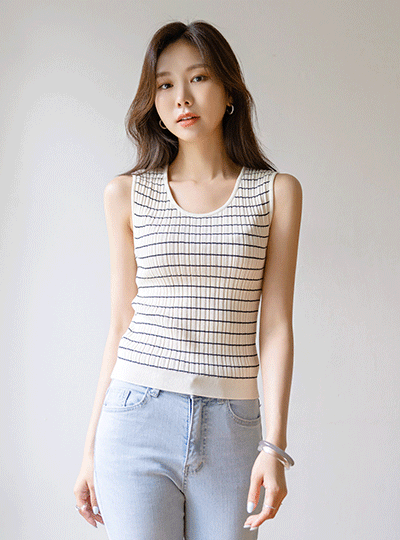 Stripe Patterns Summer Corduroy Sleeveless shirts Knit