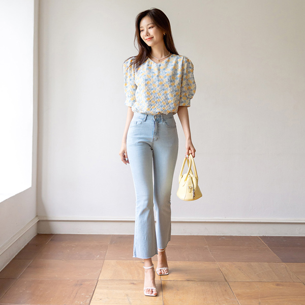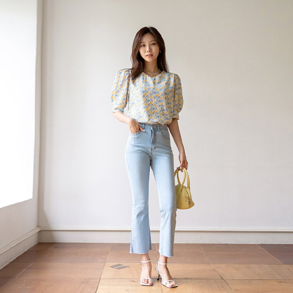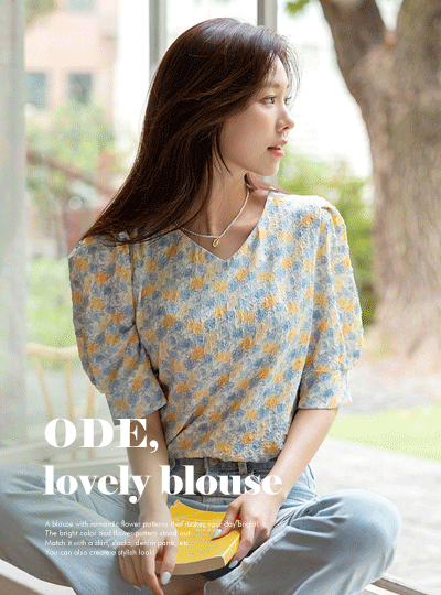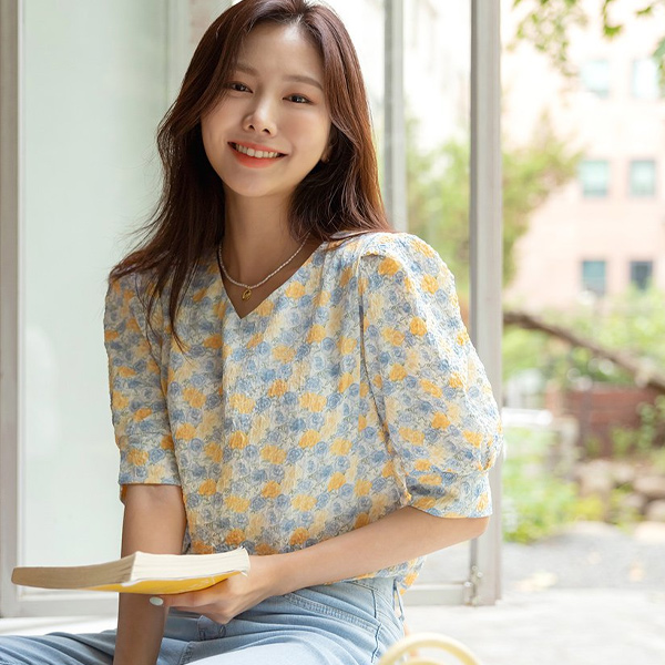 Romantic Flower Patterns Puff Sleeves Blouse
