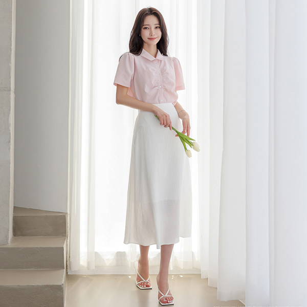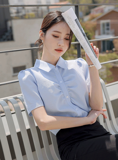 Cooling Wrinkle Shirring Blouse