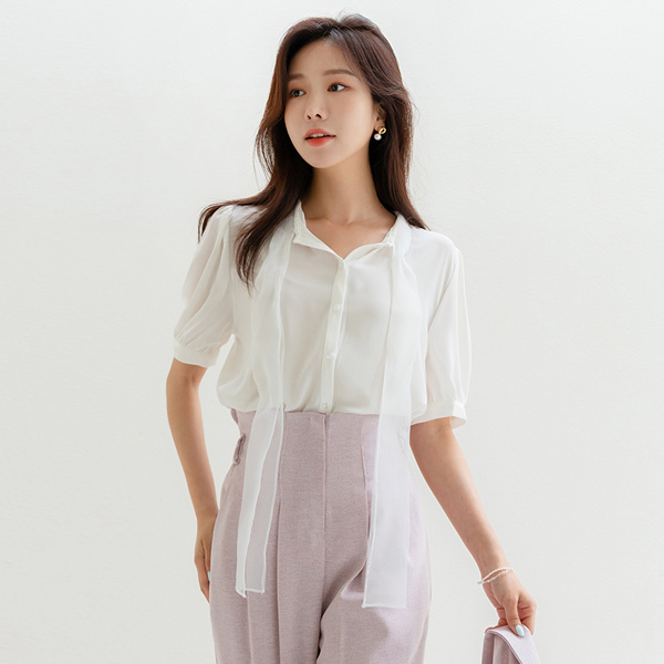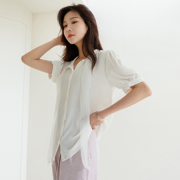 Romantic See-through Ribbon Tie Point Blouse