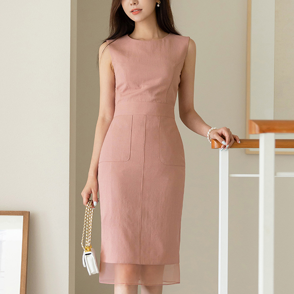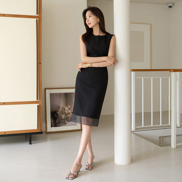 Graceful Hems See-through Point Sleeveless shirts Dress
