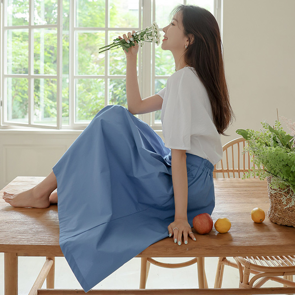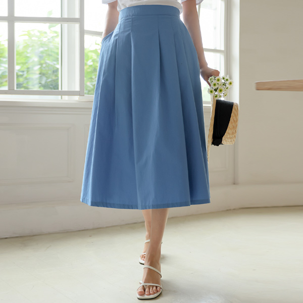 Point Color Pintuck A-line Back Banding Cotton Rong Skirt