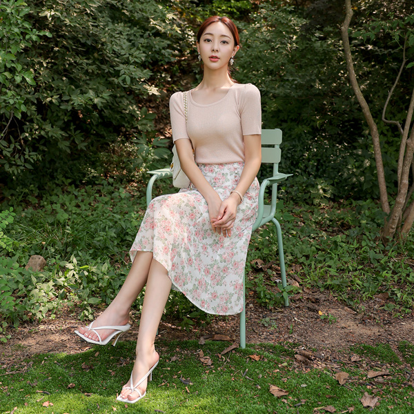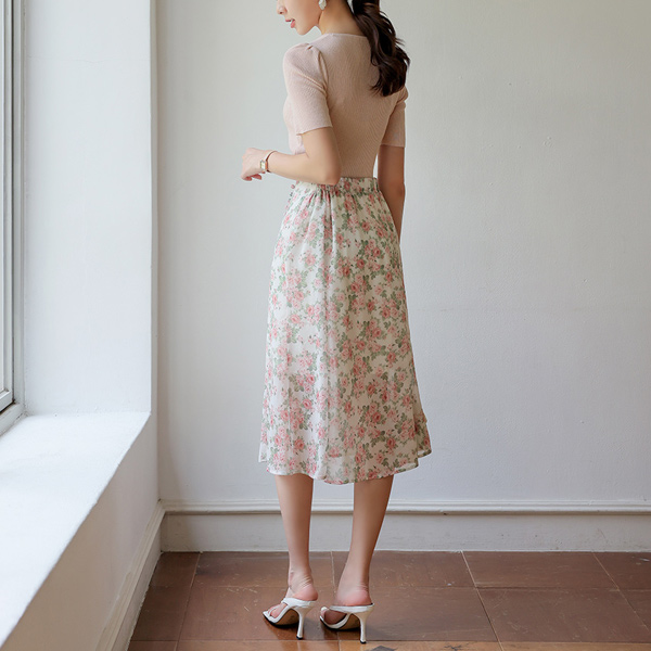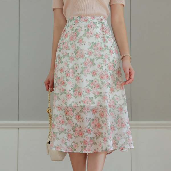Rose Flower 콩 Button Chiffon Skirt