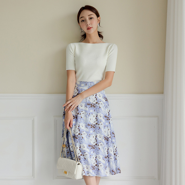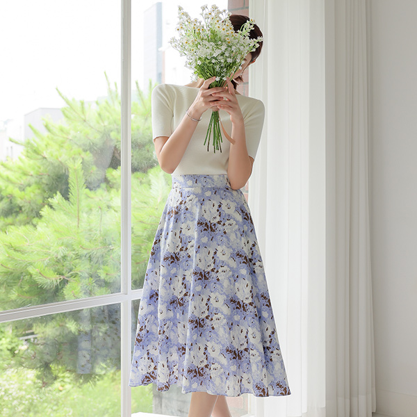 Linen Back Banding Mable Flared Skirt