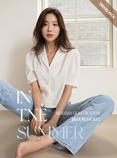 Modernistic Gold Color Combination Button Puff Sleeves Blouse Jacket