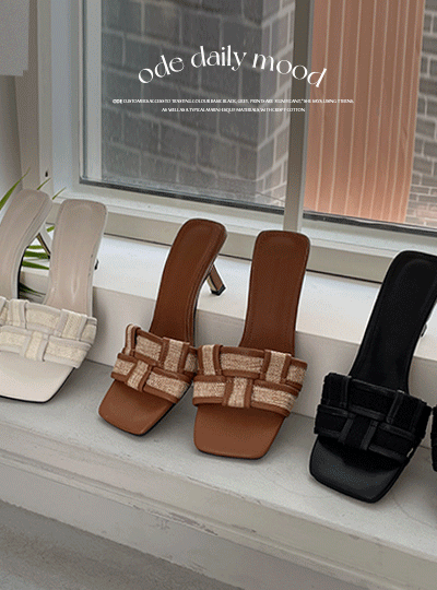 Summer Rattan Double Block Cross Sandals Heels
