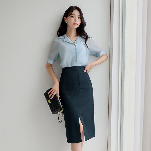 See-through Collar Pearl Button Blouse