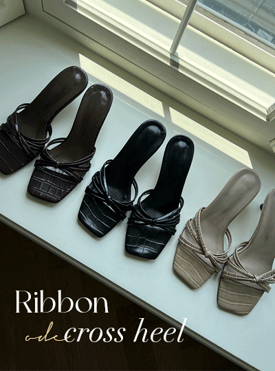 Ribbon Cross String Croaker Leather Sandals Heels