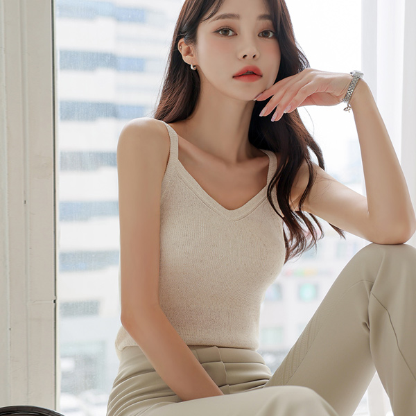 Modern Linen Deep V-neck Sleeveless shirts Knit