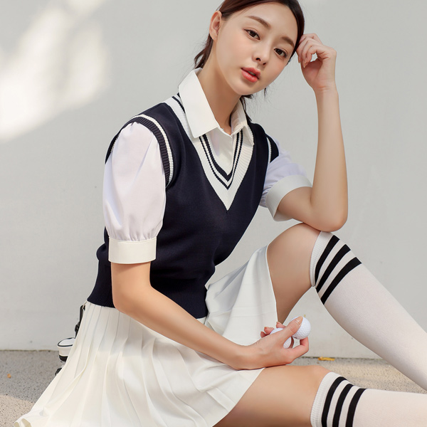 V-neck Color Combination Vest Knit