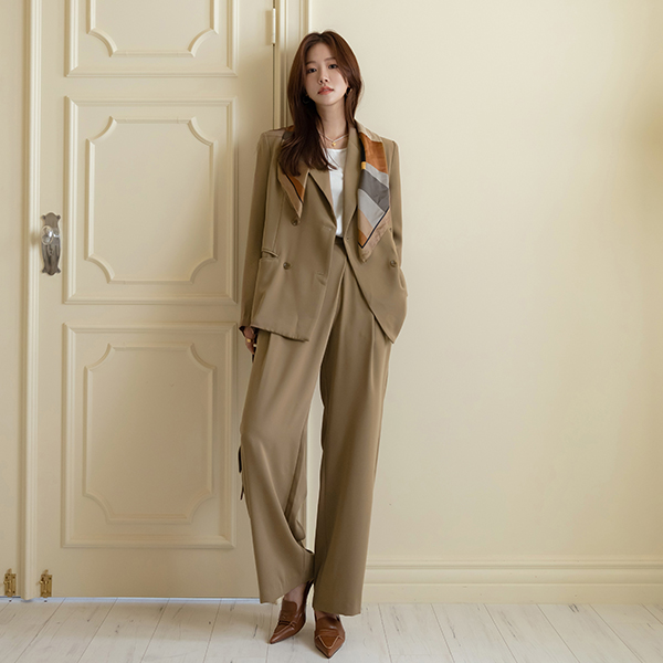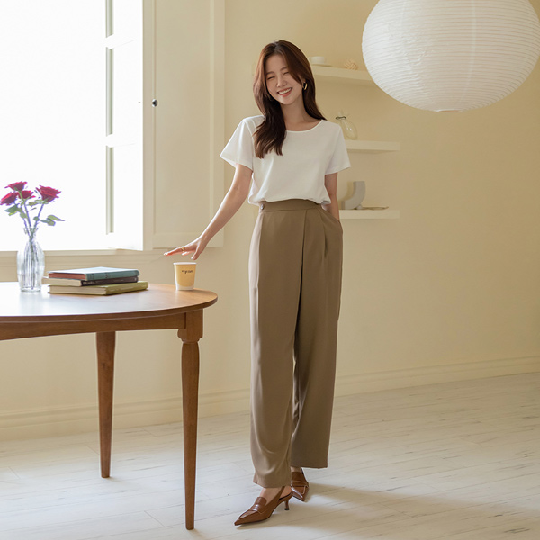 Soft ODE Steel Diagonal Line Button Wide Slacks