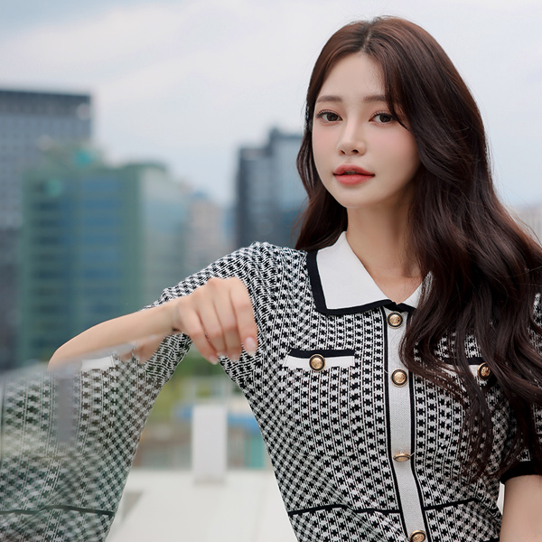 Biscos Jacquard Color Combination Collar Knit Dress