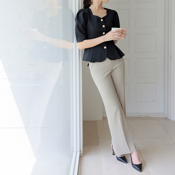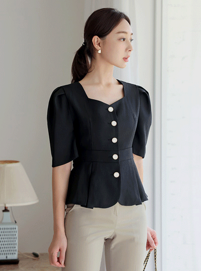 Heart Neck Back Ribbon Puff Short-sleeve Jacket&Blouse