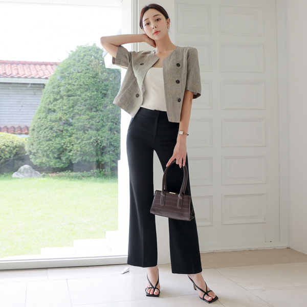 Double-button Check Linen Open Jacket