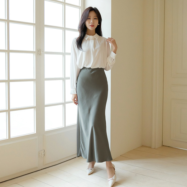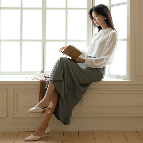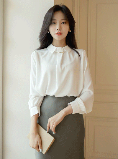 Pearl&Gold Tip Point Chain Neck Point Blouse