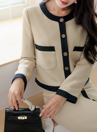 Loel Jacquard Color Combination Round No-collar Jacket