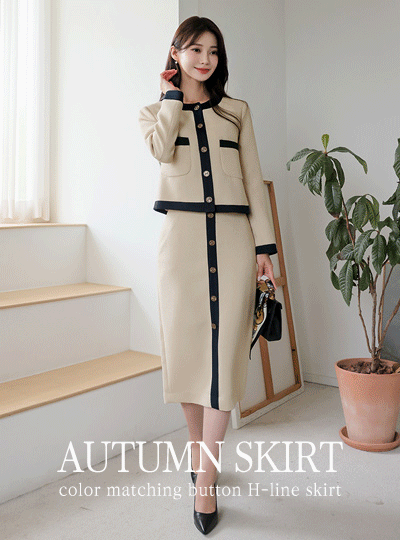 Loel Jacquard Color Combination Button H-line Skirt