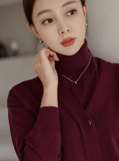 Soft Turtleneck Midi Sleeves Knit T-shirt