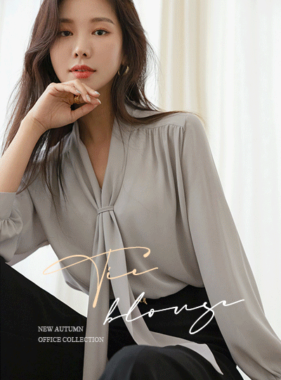 Feminine Shoulder Shirring Tie Blouse