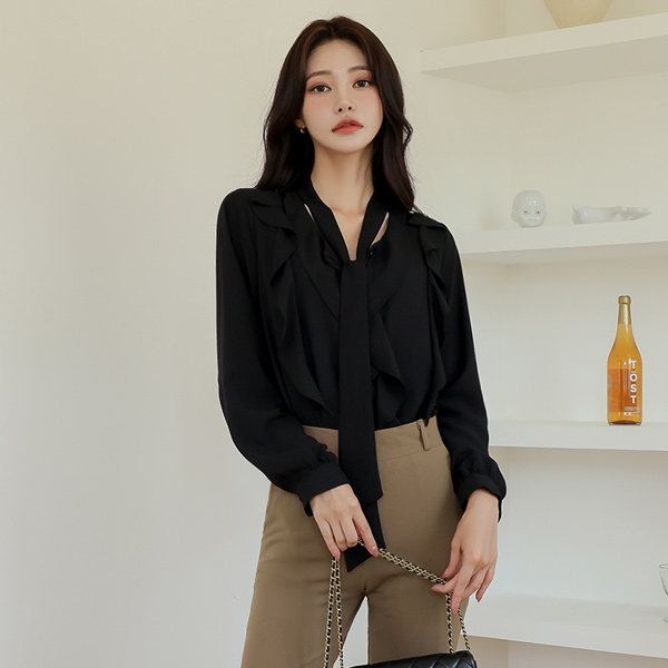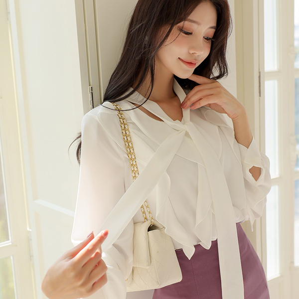 honey Open Frill Tie Blouse