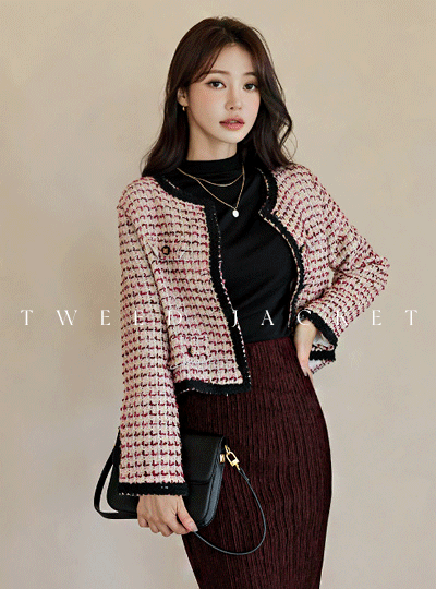 sugar Color Combination Raund neck Wool Tweed Jacket