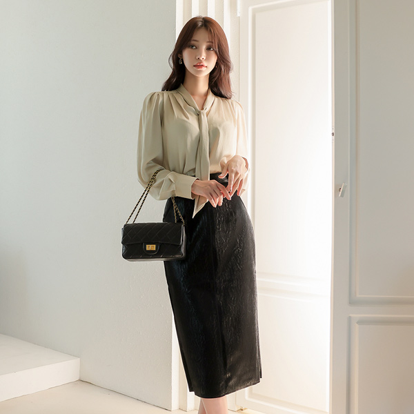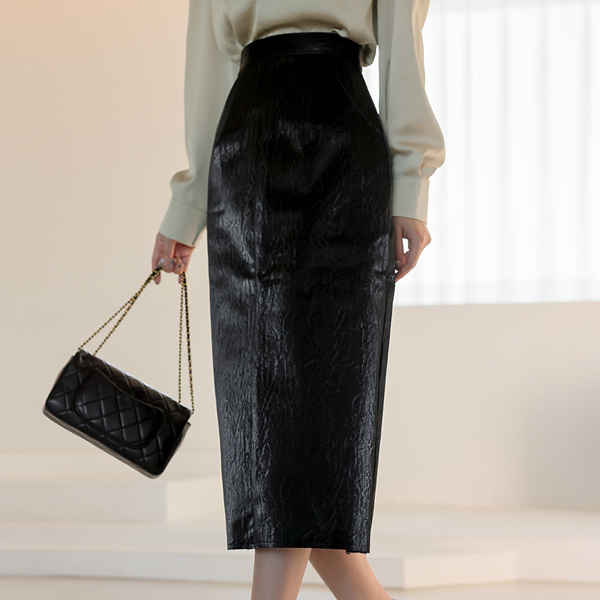 Wrinkle Eco Leather H-line Skirt