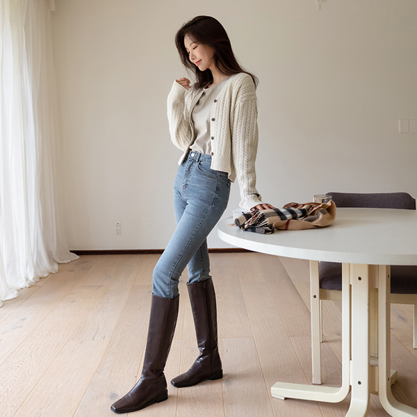 Autumn Mood Natural Cutting Semi- Boot-Cut Denim Pants