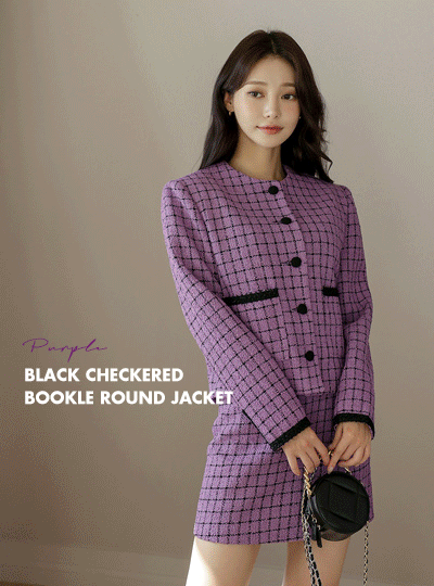 Black Check Bouclé Round Jacket