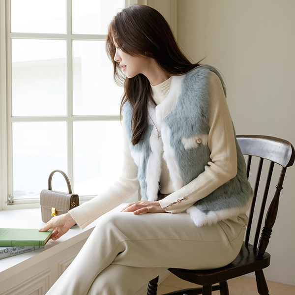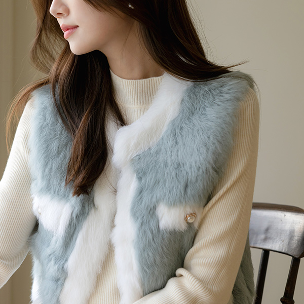 Bling Cubic Point Half-Highneck Corduroy Knit