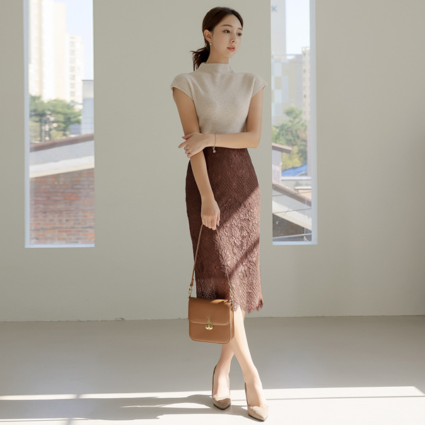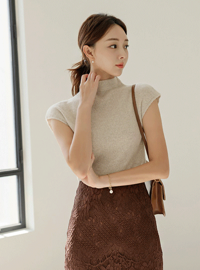 raccoon Half-Neck Cap-Sleeves Fine Wool Knit