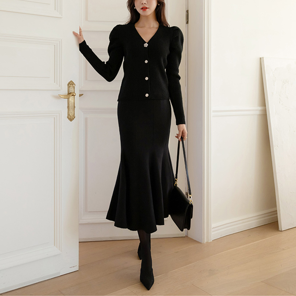 Jewel Button Point Puff Cardigan Knit