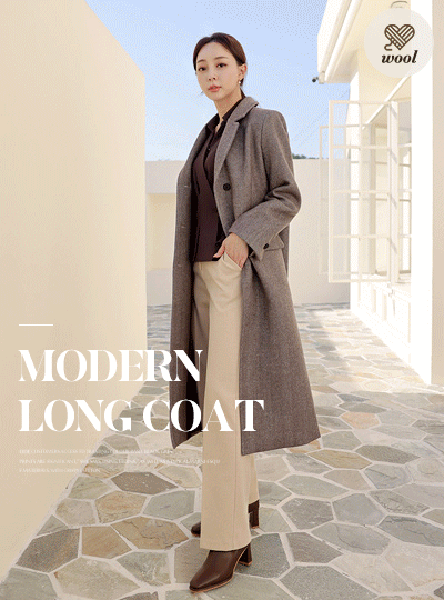 Modern Three buttons Wool Herringbone Long Coat
