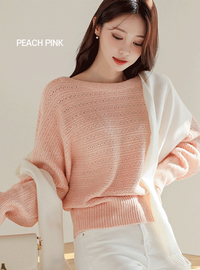 Boat Neck Diamond Batwing Sleeve Fit Knit