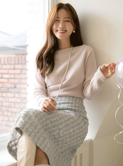 fluffy Creamy Color Lip-Neck Shirring T-shirt