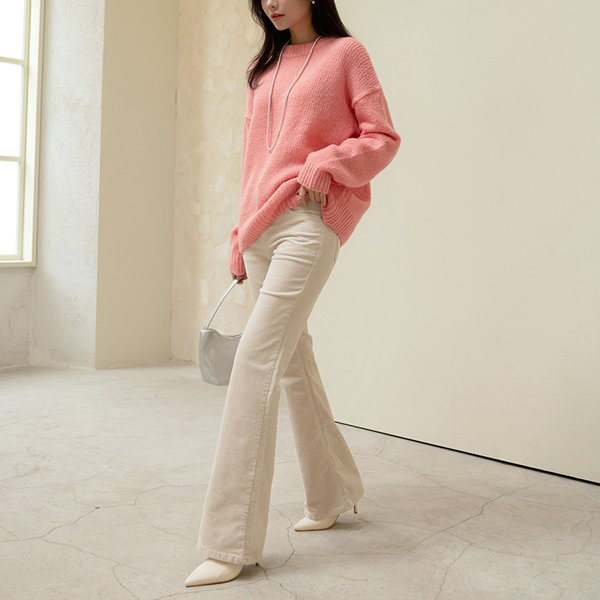 Trendy Point Color Corduroy Boot-Cut Pants