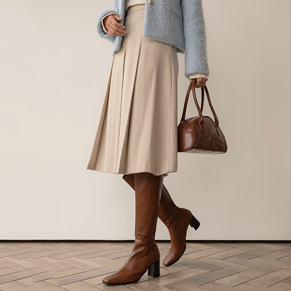 Chic Back Slit Square Toe Long Boots