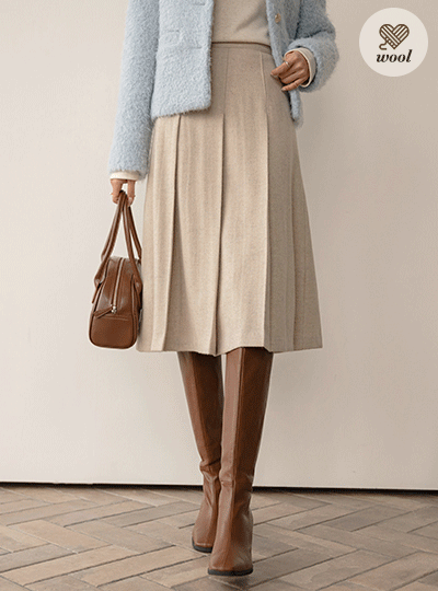 Pintuck Pleats Wool Skirt