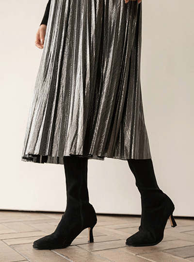 Metallic Point Pleats Banding Long Skirt