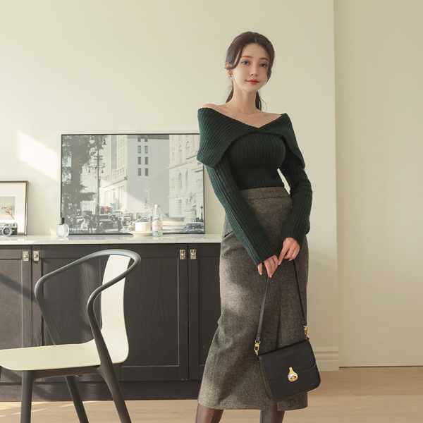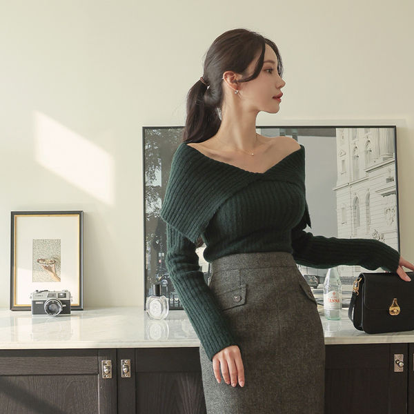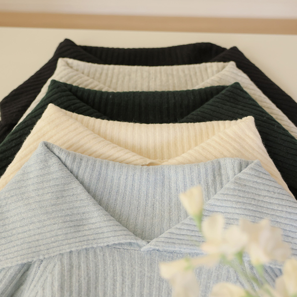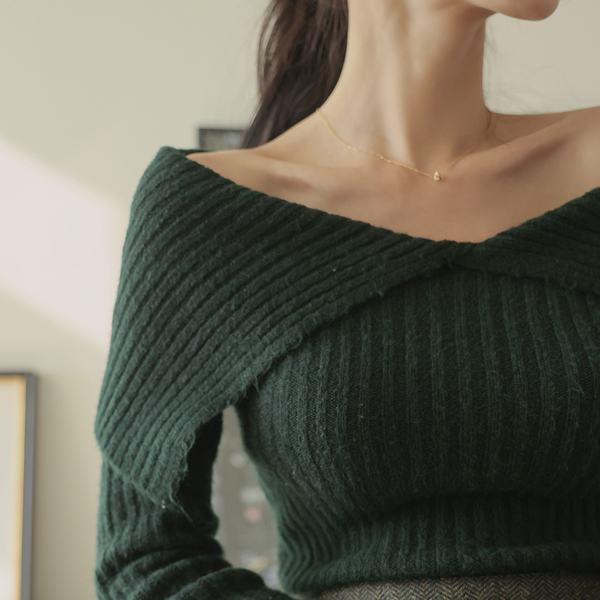 Wide-Collar Off Shoulder Corduroy Knit