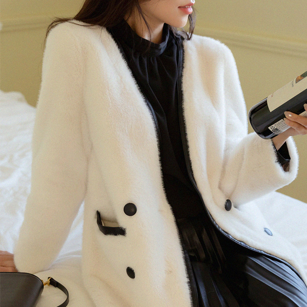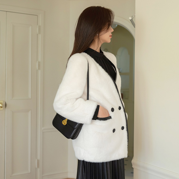 Shirring Half-Highneck Feminine Blouse