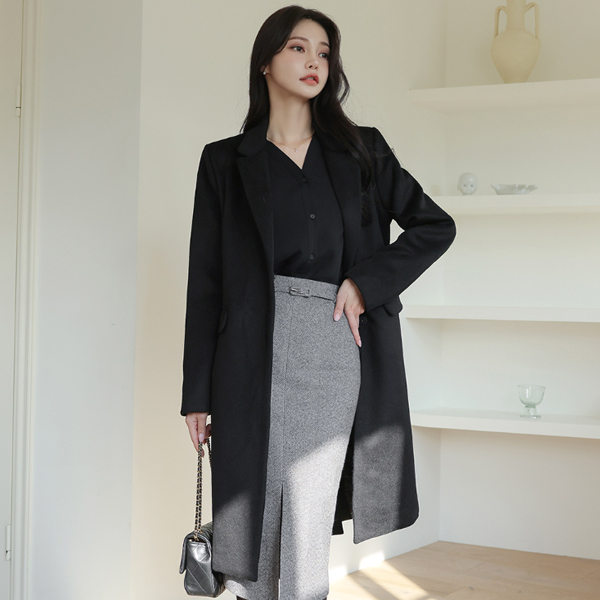 Herringbone Belted Wool Slit Skirt(napping lining) Ⅱ