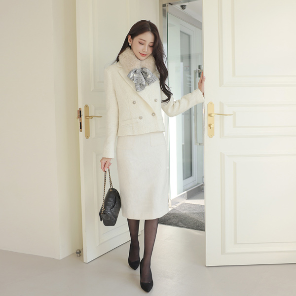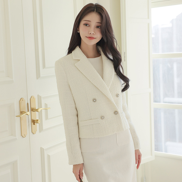 Short Tweed Double-button Wool Jacket