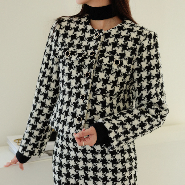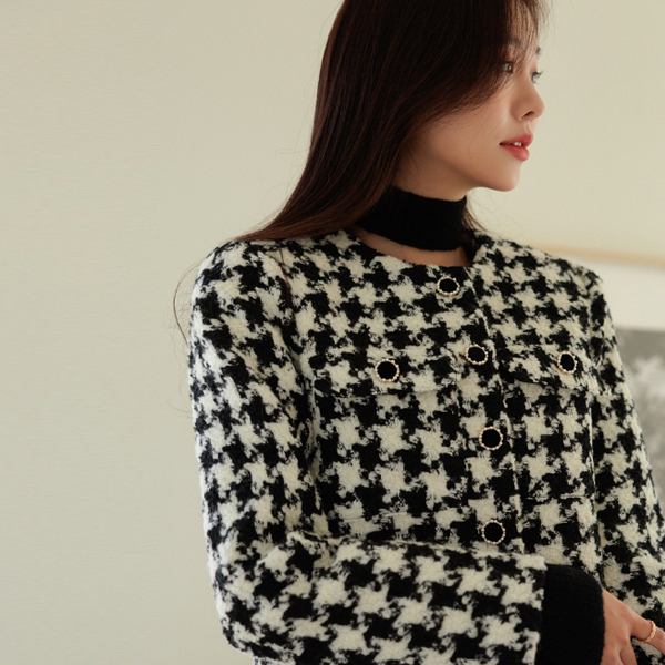 Bonjour Coco Check Wool Short Jacket