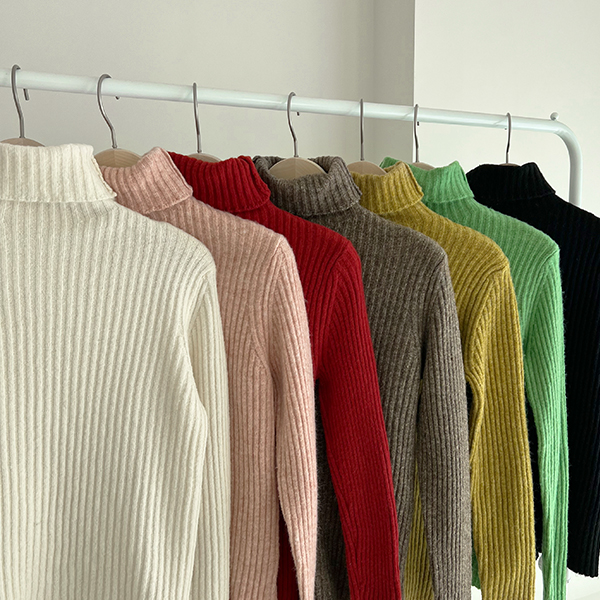 Rainbow Color Cozy Corduroy Wool Turtleneck Knit