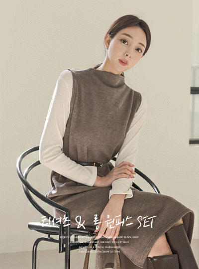 T-shirt&High-Neck Corduroy Long Dress SET