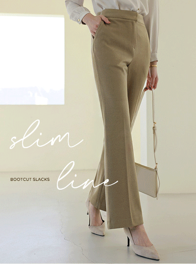 Mood Wool Span Slim Boot-Cut Slacks
