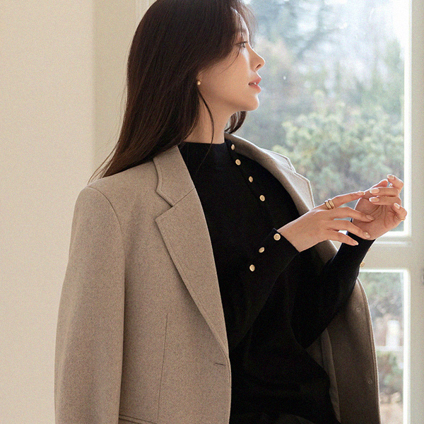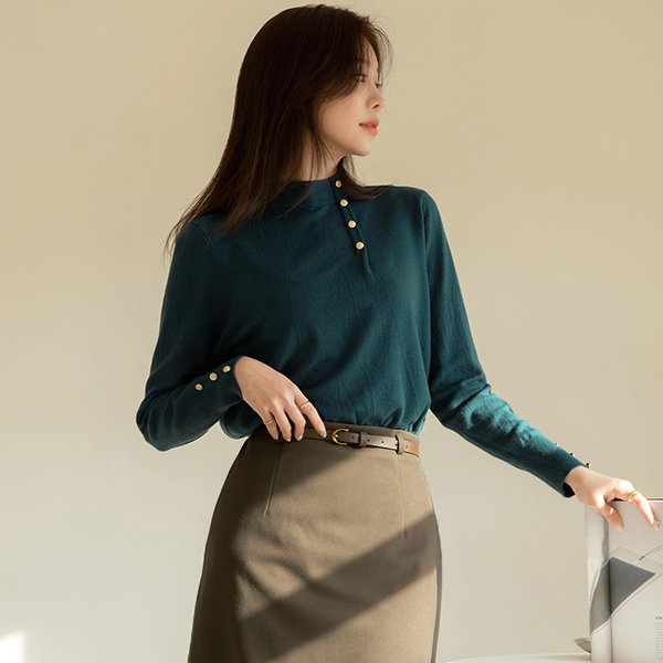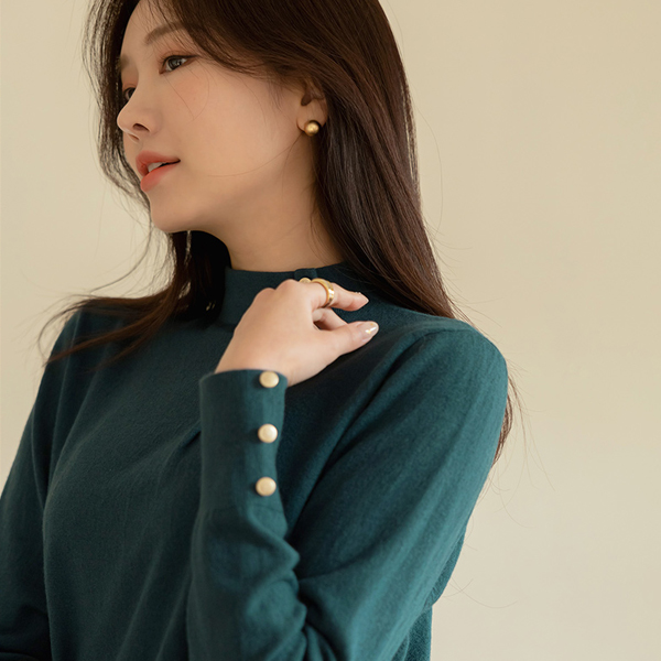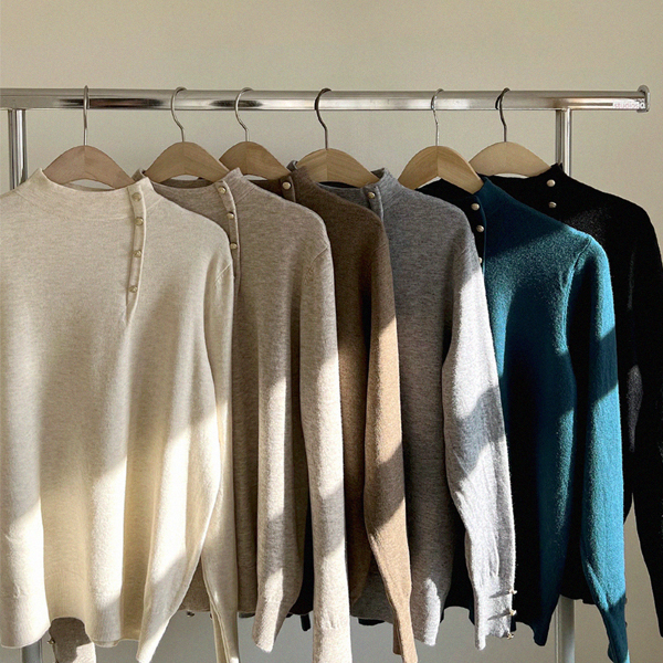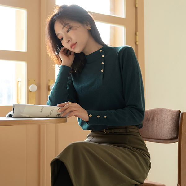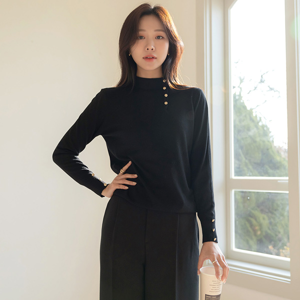 Lily Gold Button Soft Touch Half-Highneck Knit