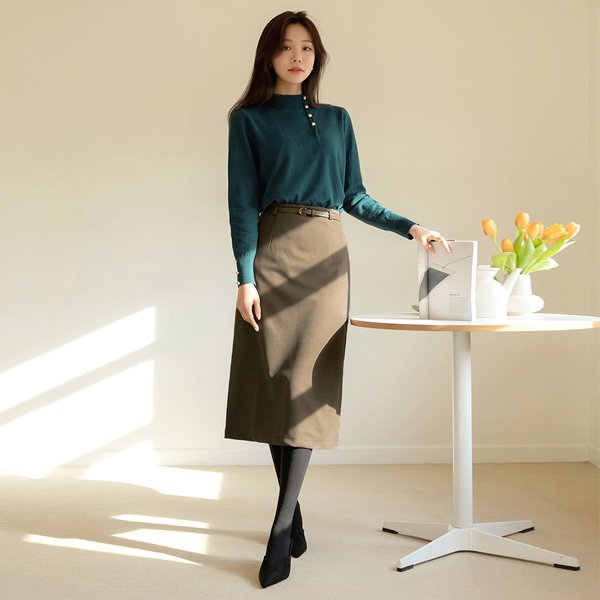 Lily Gold Button Soft Touch Half-Highneck Knit