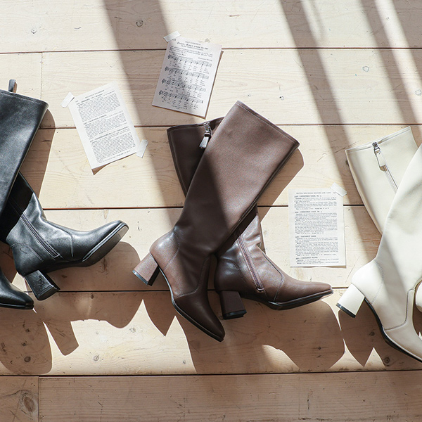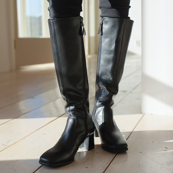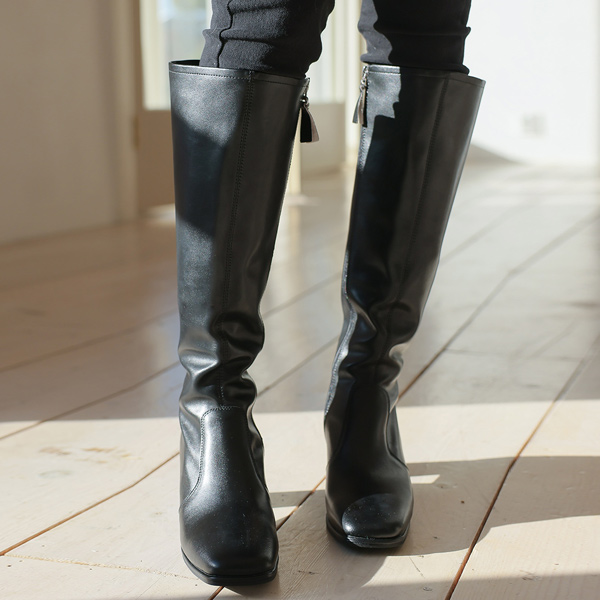 Real Cowhide Square Line Cutting Long Boots