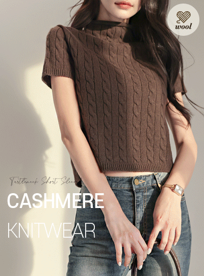 minimal Cable Turtleneck Short-sleeve Wool Knit